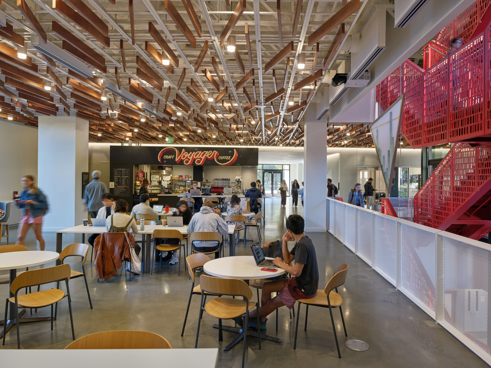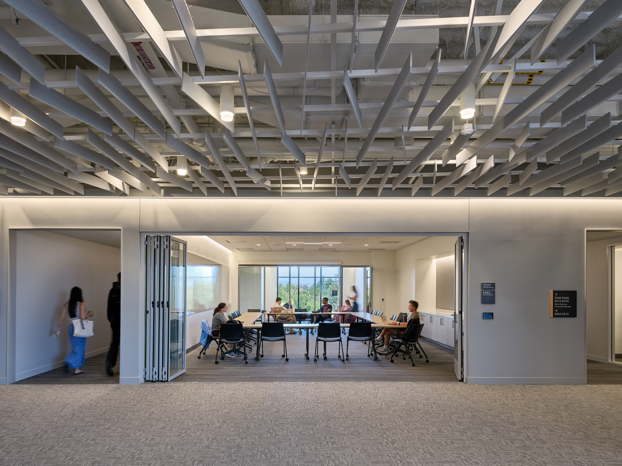 The facility will include a flexible framework of permanent offices, rotating research team spaces, and collaboration areas designed to adapt and evolve with these ever-changing and growing fields. The DSCC will feature a coffee bar, a 200-person special event space, classrooms, lecturer and student administrative offices, and undergraduate student study spaces designed to engage and inspire the Stanford community around computation and data.